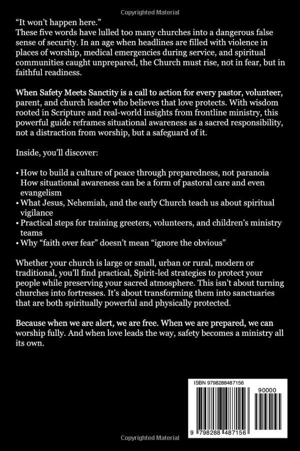 With Scripture as the foundation and real-world guidance throughout, this book helps the Church respond to modern challenges with wisdom, vigilance, and love. It’s not about turning your sanctuary into a fortress; it’s about creating an environment where peace, protection, and presence work hand in hand.